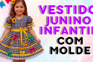 Neste vídeo tutorial, vou te ensinar, passo a passo, como fazer um lindo vestido junino infantil com manga bufante, saia godê ou rodada, fita de cetim, renda na barra e laços de cetim para enfeitar. Além disso, você poderá baixar o molde gratuito para começar a costurar o seu vestido junino com muito mais facilidade.